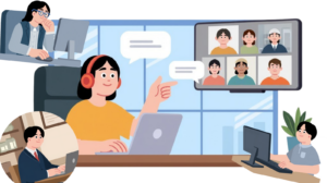 表情や空気感を感じ取りにくいため、アイスブレイクや自己紹介に加え、バーチャル背景やエフェクト、簡単なゲームなどで自然なコミュニケーションを促す設計が重要です。